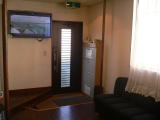 治療の緊張感を和らげるため環境放送を流しています。また、待合室にも同様に大画面で音楽とともに環境放送を流しています。